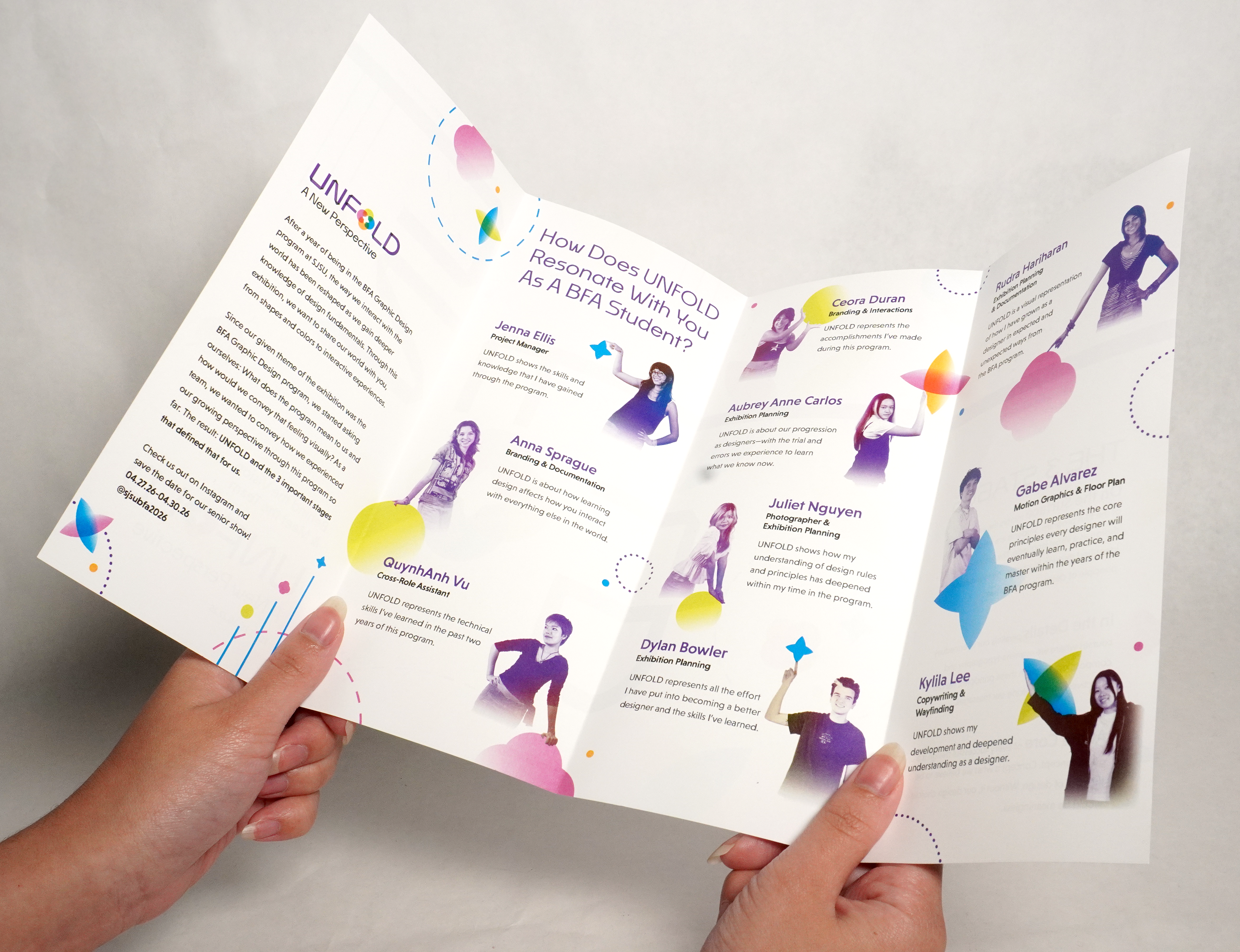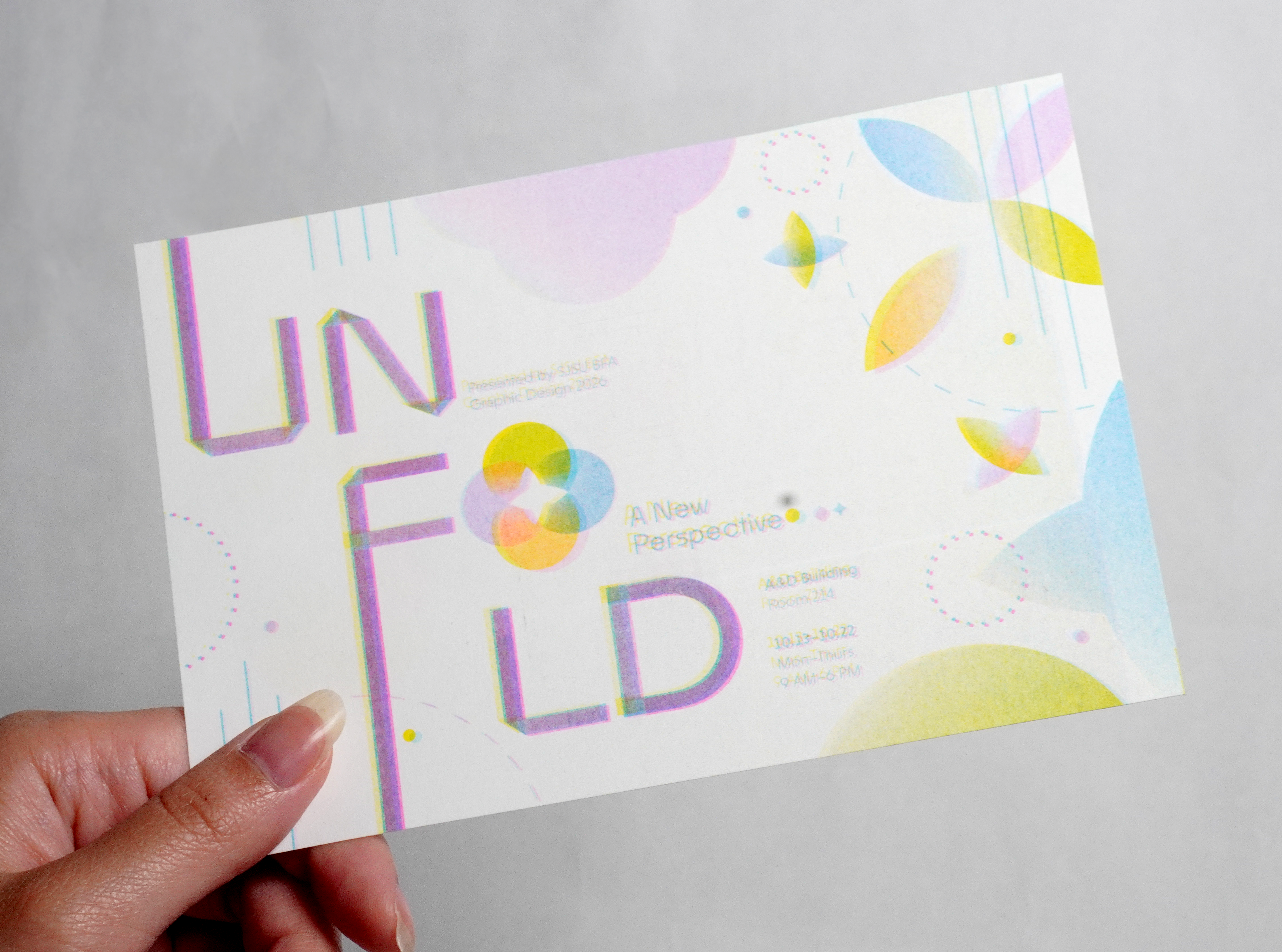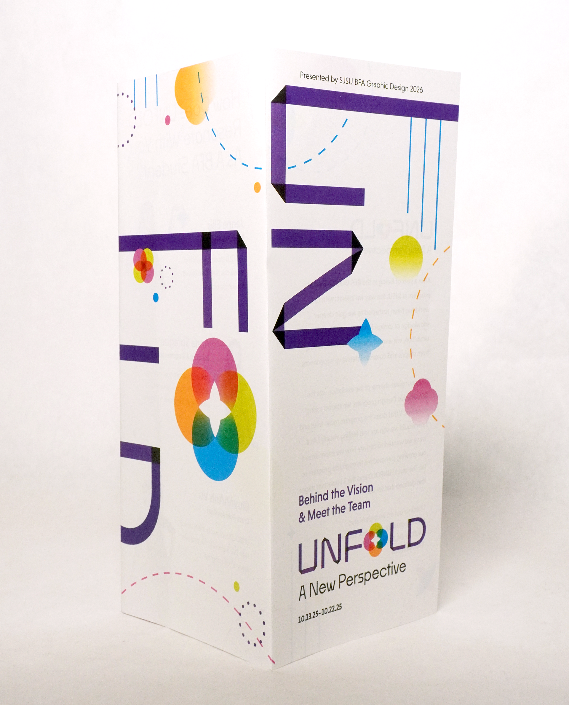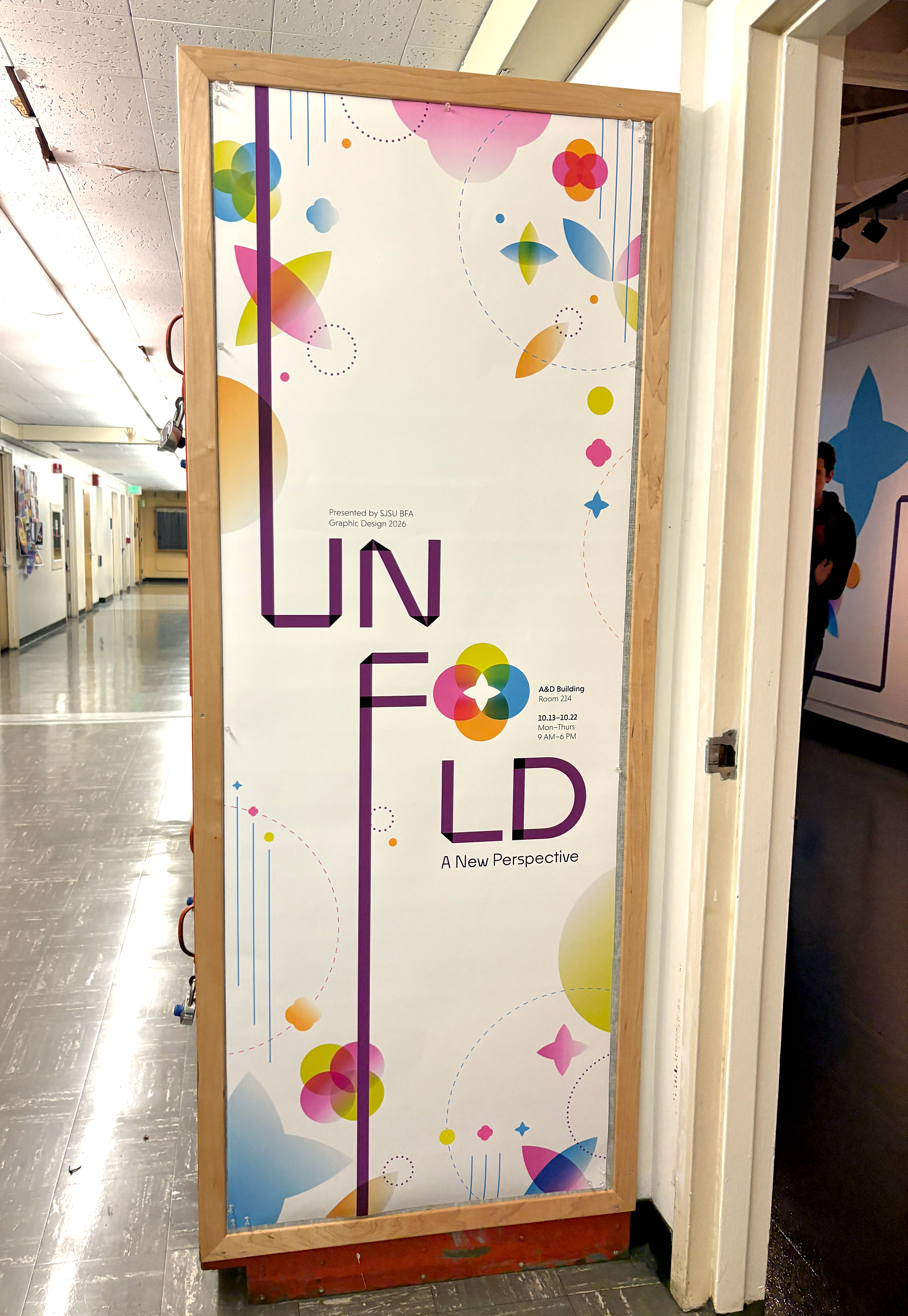 An exhibition created by ten graphic design students at San José State University, Unfold breaks the BFA Graphic Design experience into three stages: