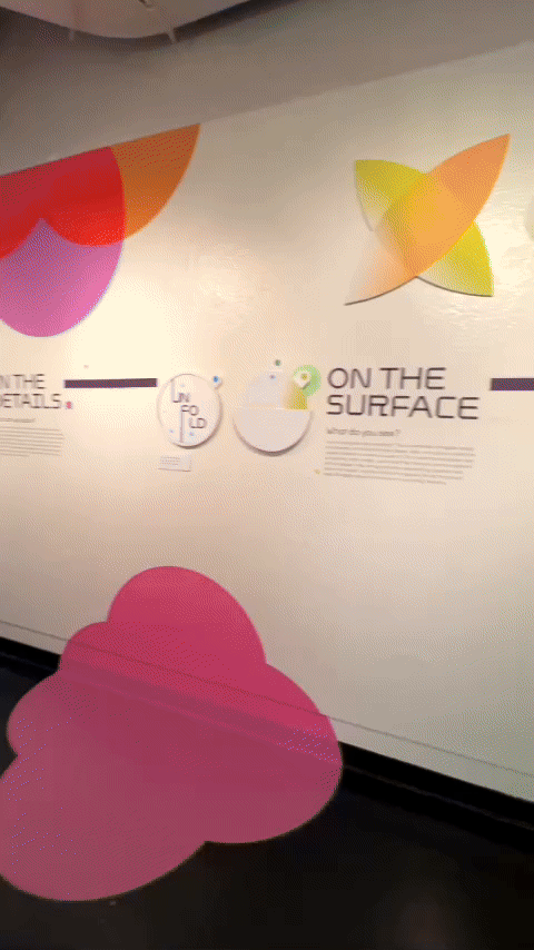 Approach: Represent the program’s transformation of designers in three stages using shapes and interactive elements that teach design principles to non-designer visitors.