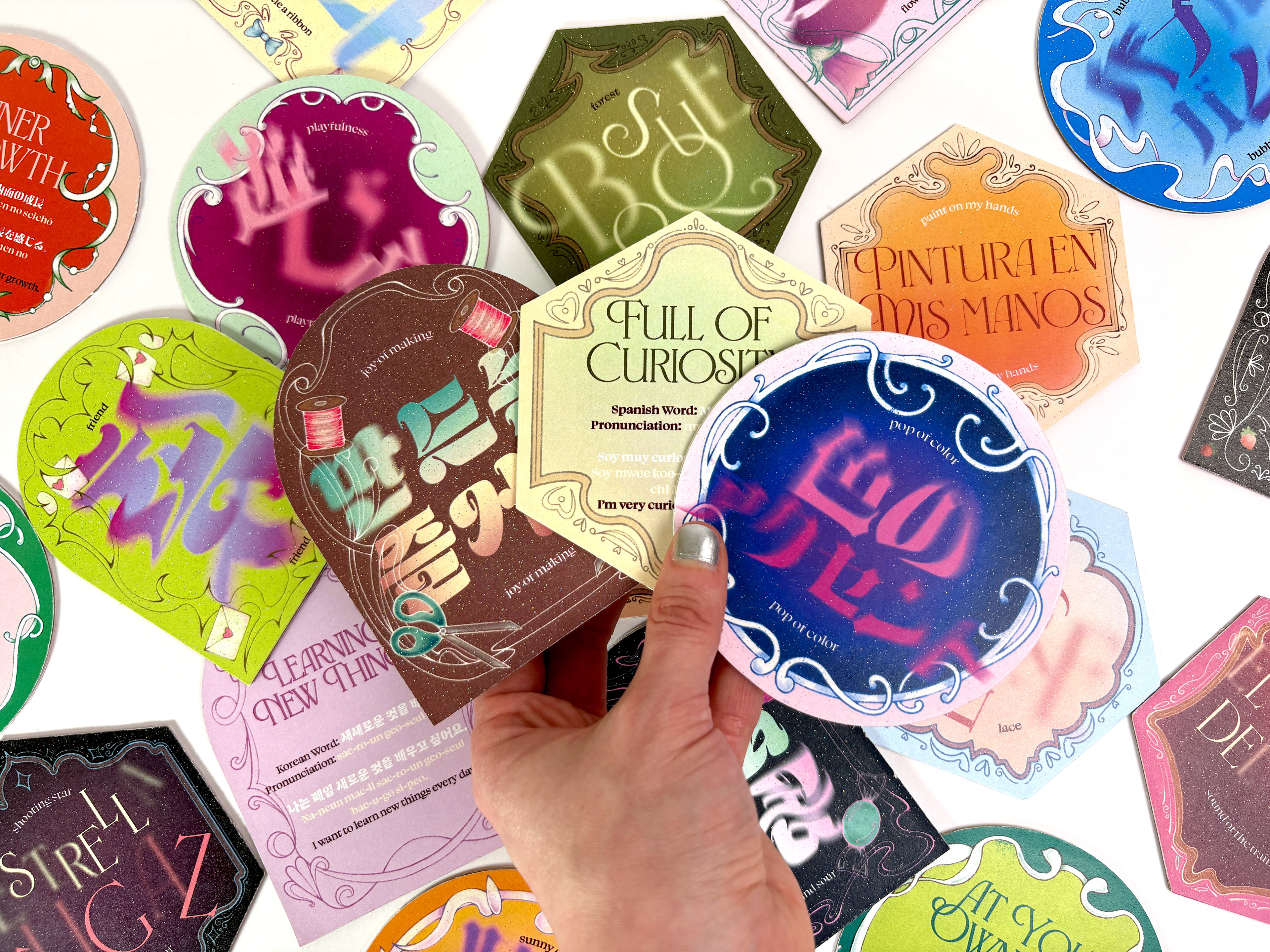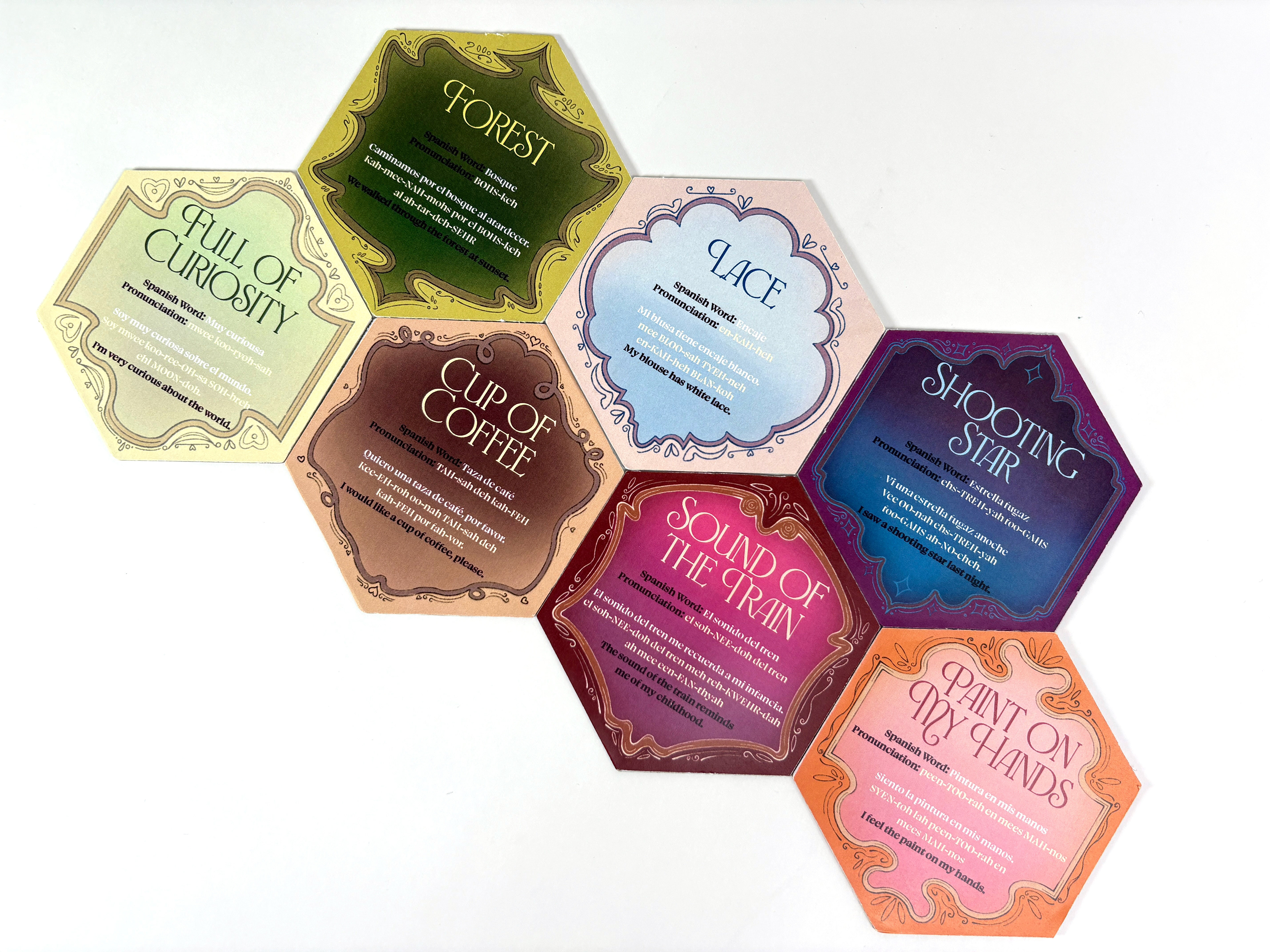 Approach: Create a flashcard deck that represents the journey of learning a language by becoming progressively clearer and more advanced in vocabulary.
